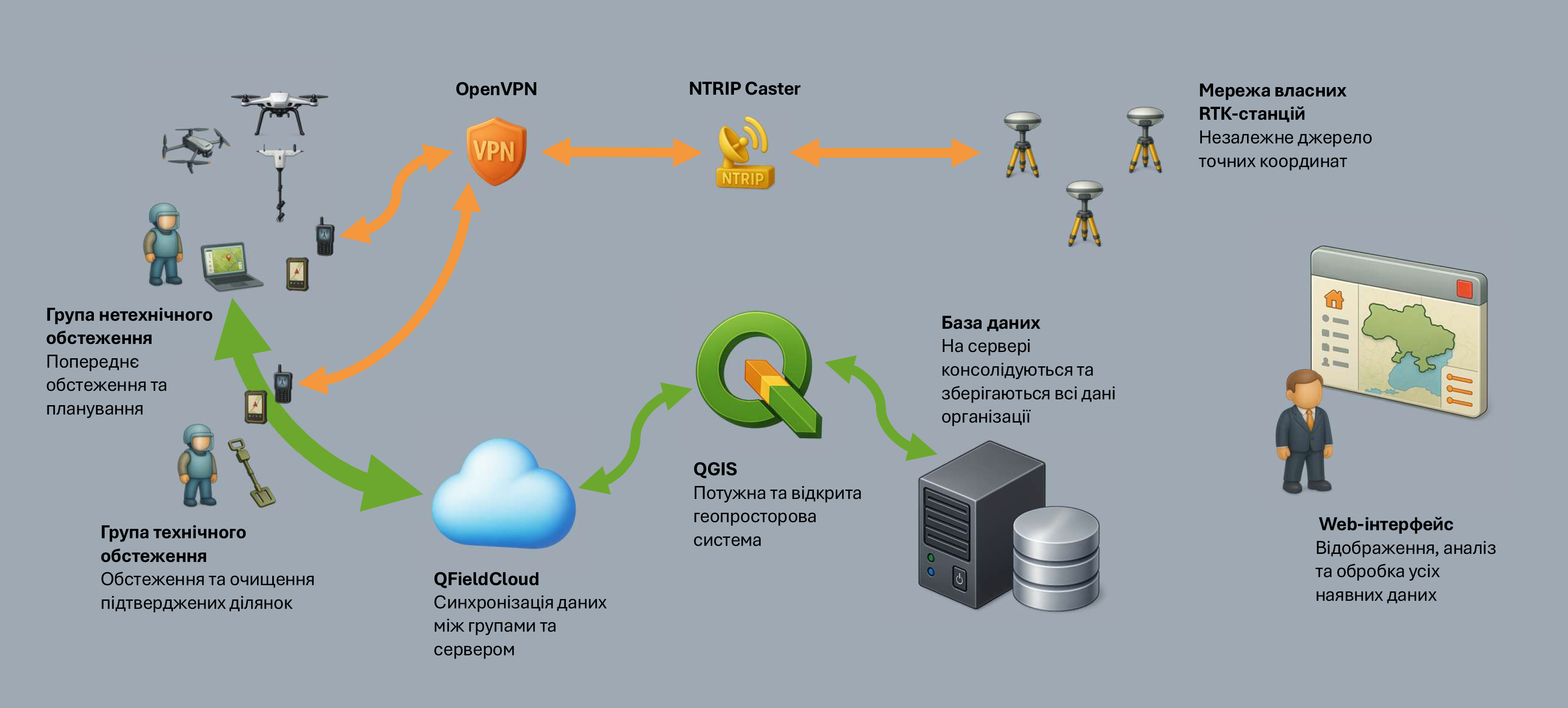 Інтеграція з НРК та машинами розмінування з автоматизацією маршрутів та збору даних