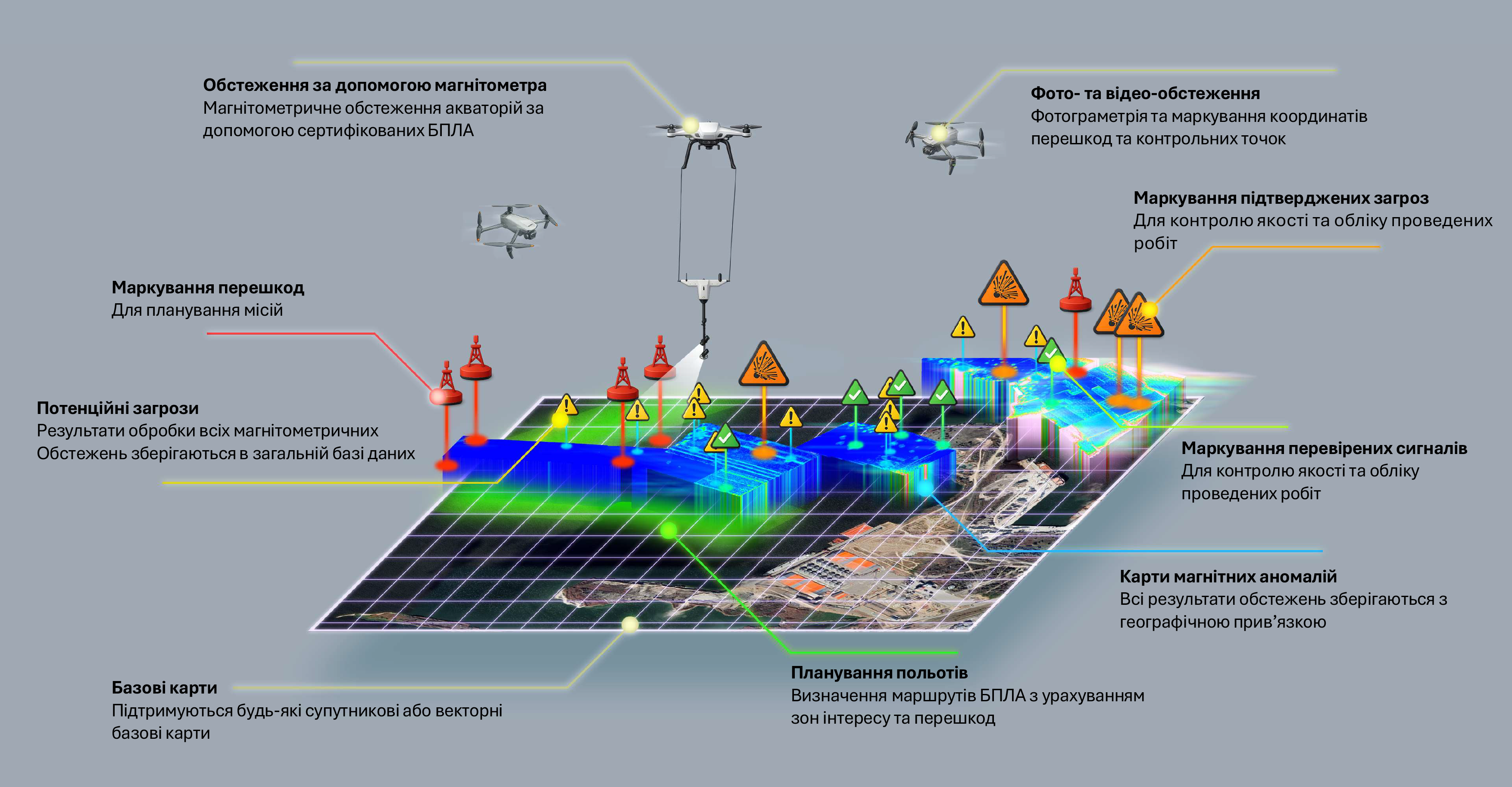 Наша система допомагає операторам протягом всього шляху при розмінуванні: від попереднього планування до остаточного ленд-релізу.